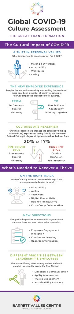 The Global COVID-19 Culture Assessment recently conducted by Barrett Values Centre revealed how our values and cultures are changing and evolving during the pandemic.